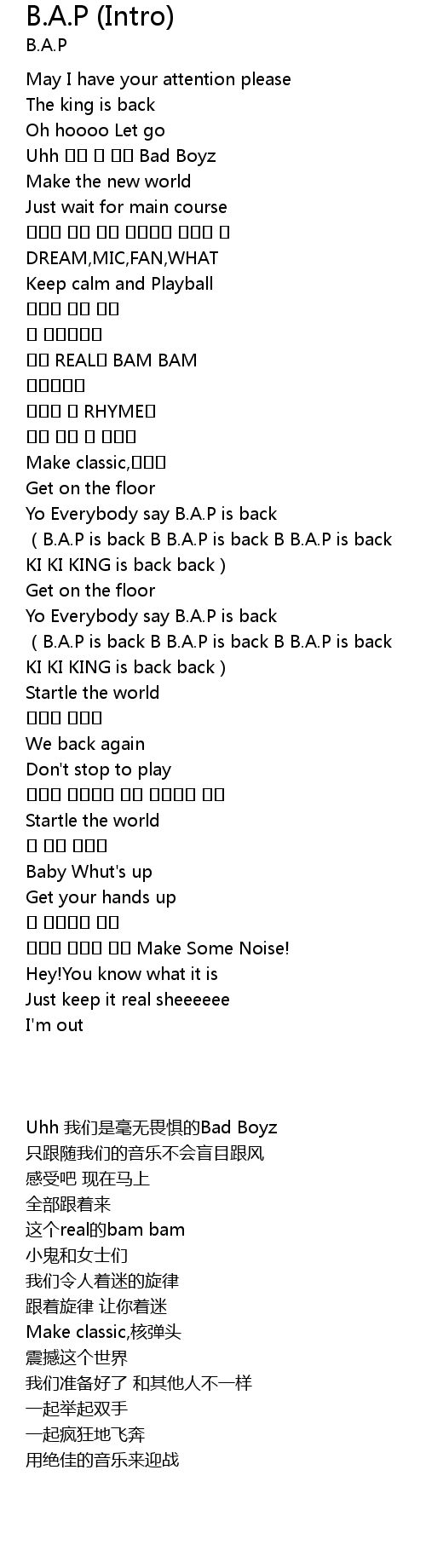 | [00:34.534] | Yo Everybody say B.A.P is back |