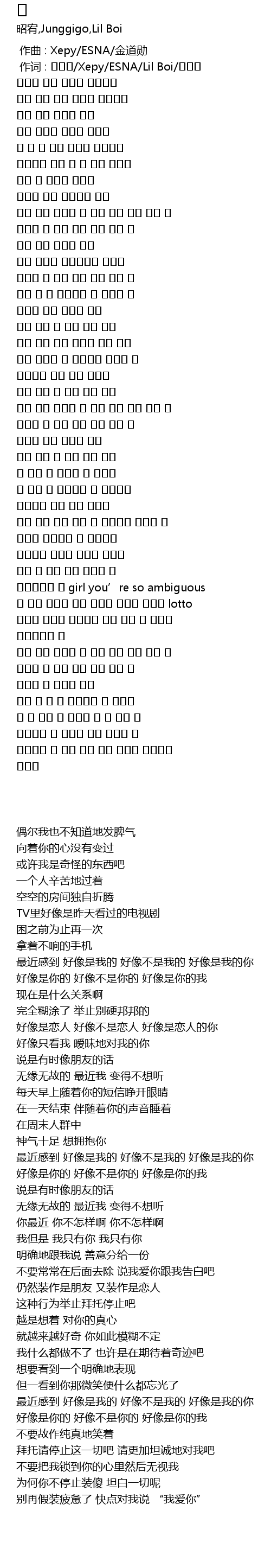 作词 : 민연재/Xepy/ESNA/Lil Boi/정기고 |