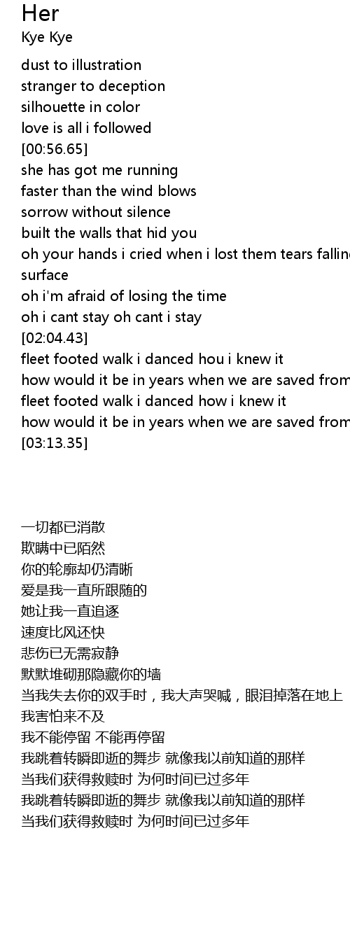| [02:59.80] | fleet footed walk i danced how i knew it |