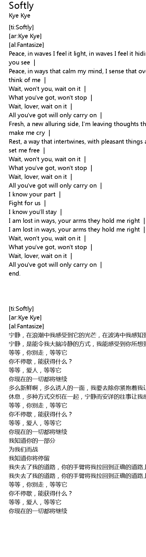 | [00:17.72] | Peace, in ways that calm my mind, I sense that over everything you think of me | |