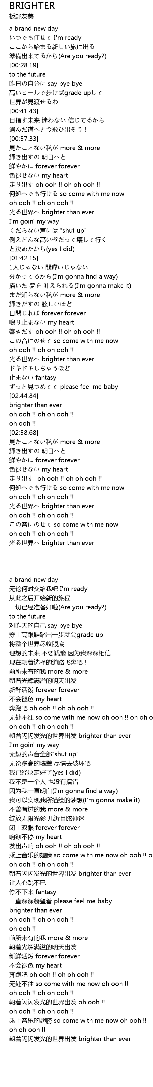 | [03:26.38] | guāng shì jiè brighter than ever |