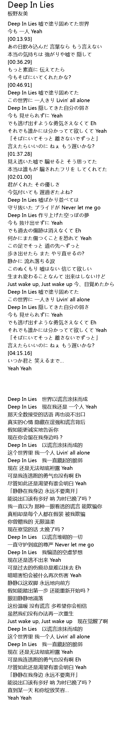 | [03:25.77] | Deep In Lies 嘘で塗り固めてた |