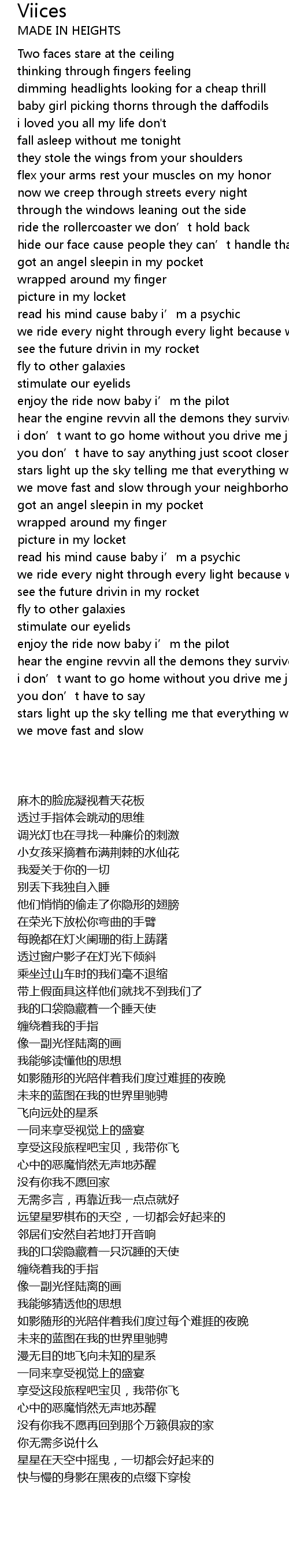 | [02:04.36] | we move fast and slow through your neighborhood turn up the stereo |
