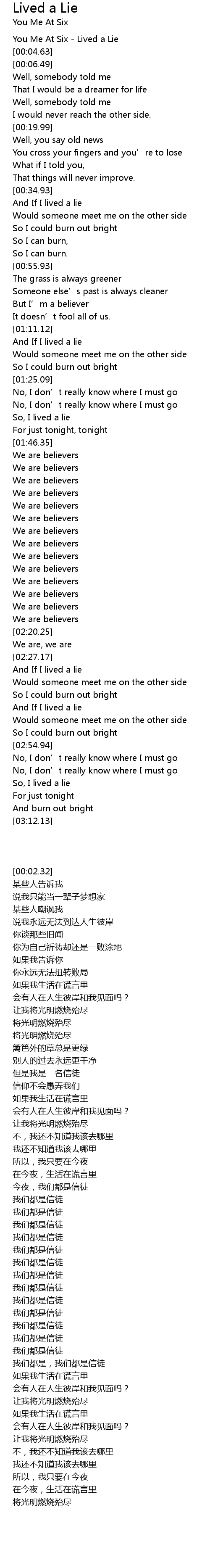| [00:02.32] | You Me At Six - Lived a Lie |