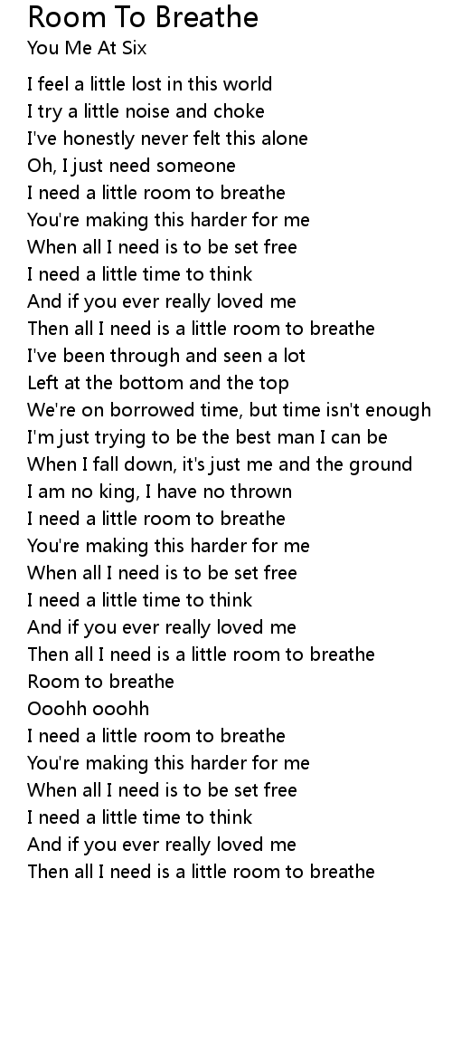 Then all I need is a little room to breathe |