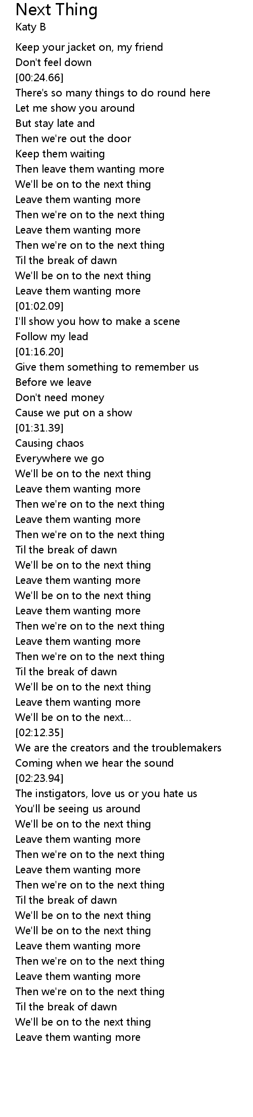 | [02:05.67] | We'll be on to the next thing |