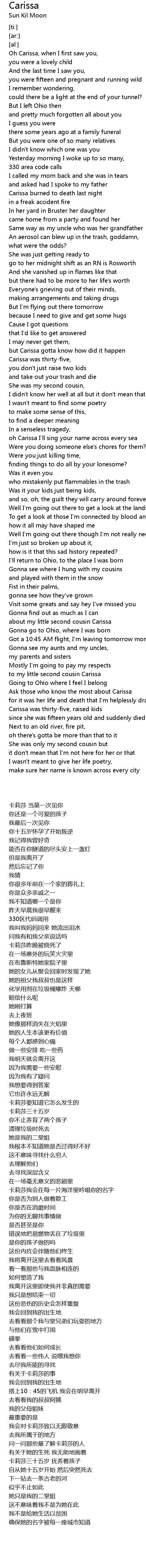 oh Carissa I'll sing your name across every sea |