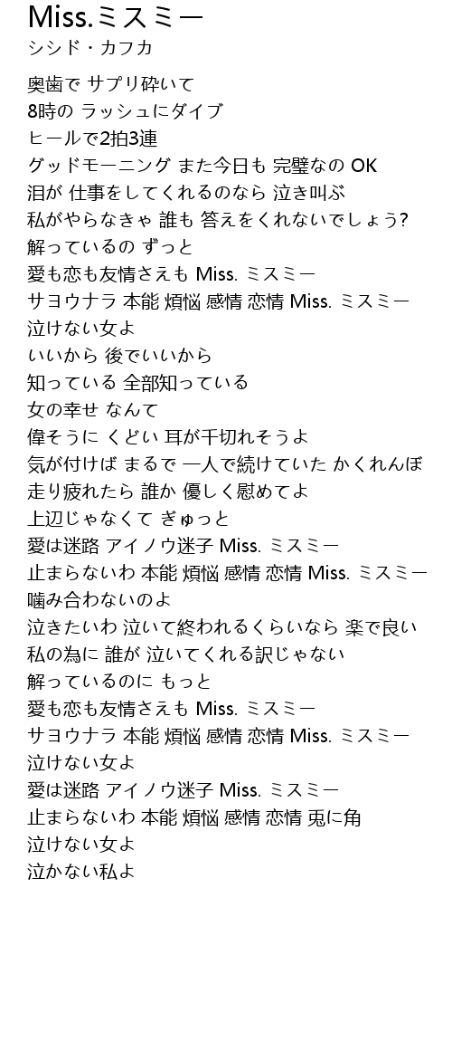 | 止まらないわ 本能 煩悩 感情 恋情 Miss. ミスミー | |
