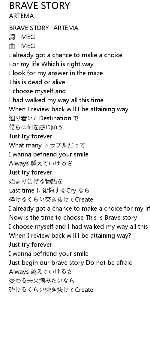 | [00:00.740] | BRAVE STORY ARTEMA |