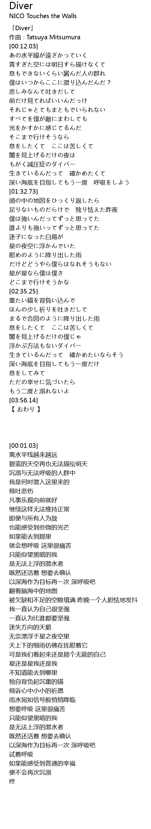 | [03:25.35] | 浮かぶ方法もないダイバー |