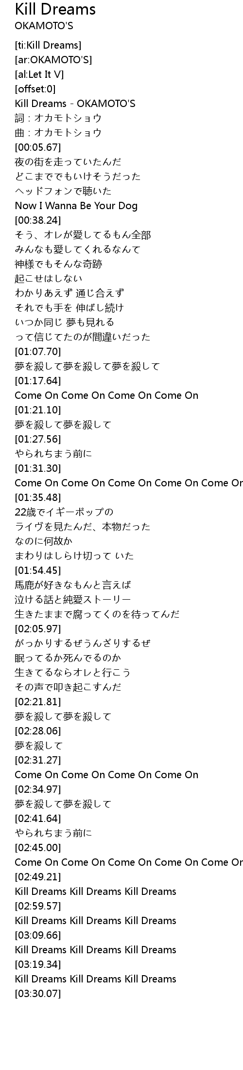 | [00:00.80] | Kill Dreams OKAMOTO' S |