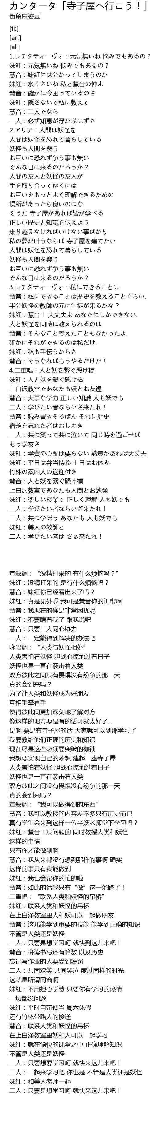 | [09:35.56] | 二人:共に学ぼう あなたも 人も妖でも |