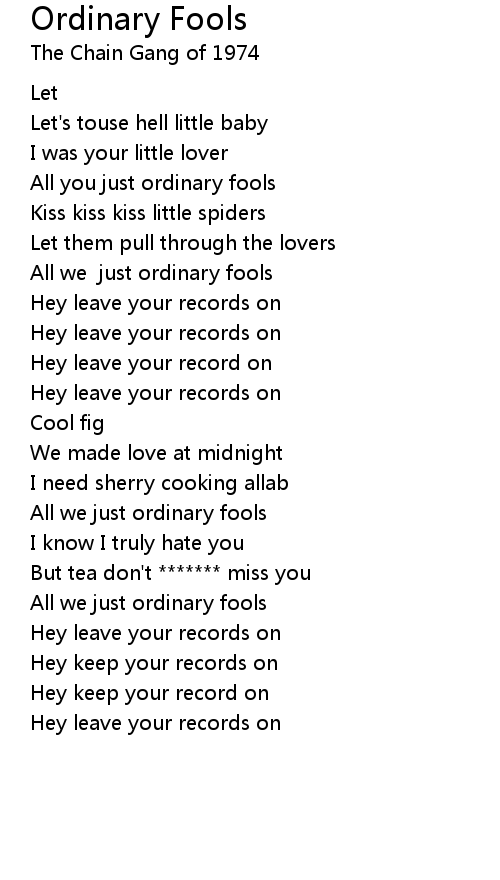 All you just ordinary fools |