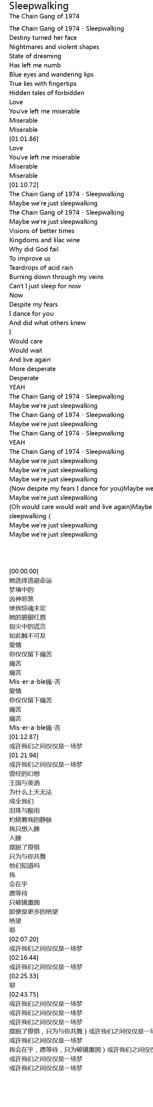 | [02:43.75] | The Chain Gang of 1974 - Sleepwalking |