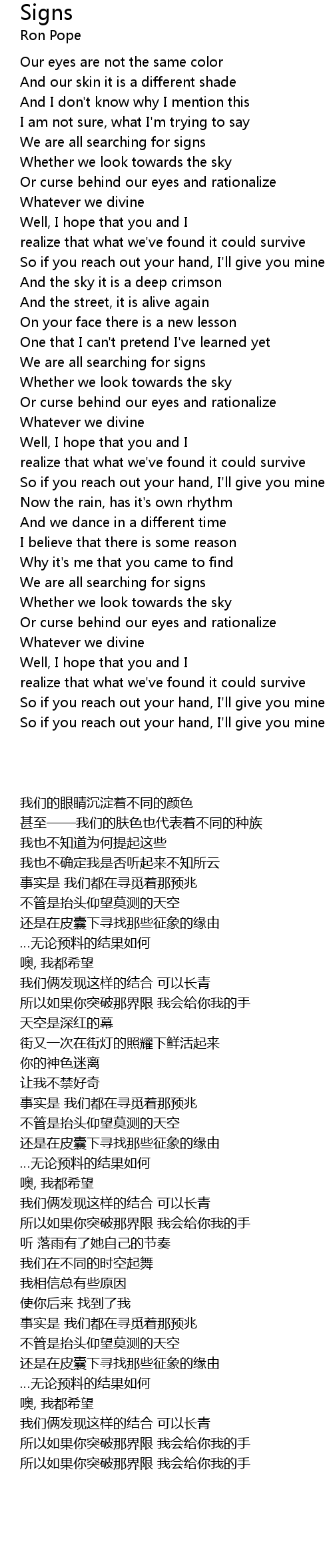 So if you reach out your hand, I'll give you mine |