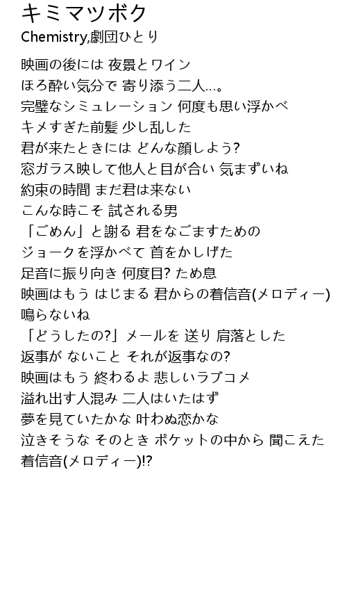 | 映画はもう はじまる 君からの着信音(メロディー) 鳴らないね | |