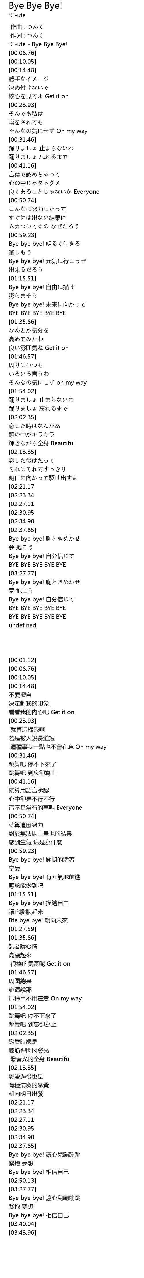 | [00:01.12] | ℃-ute - Bye Bye Bye! |