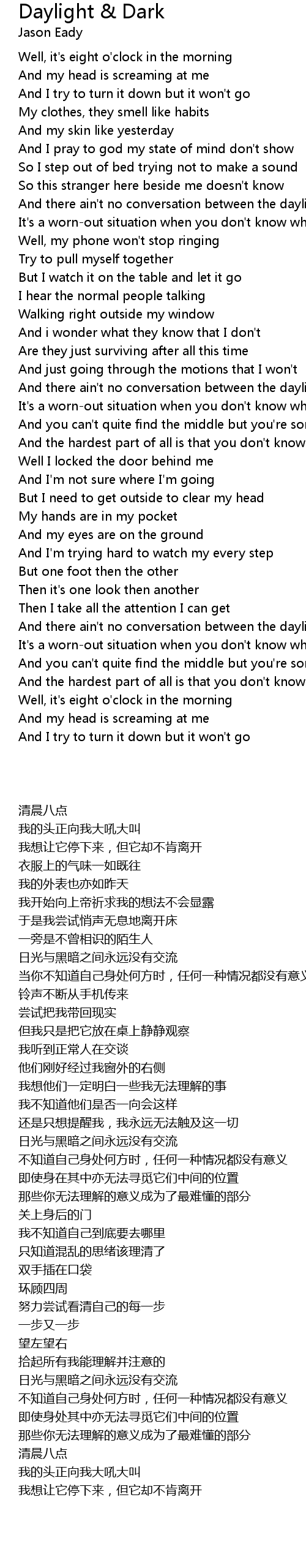 And there ain't no conversation between the daylight and the dark |