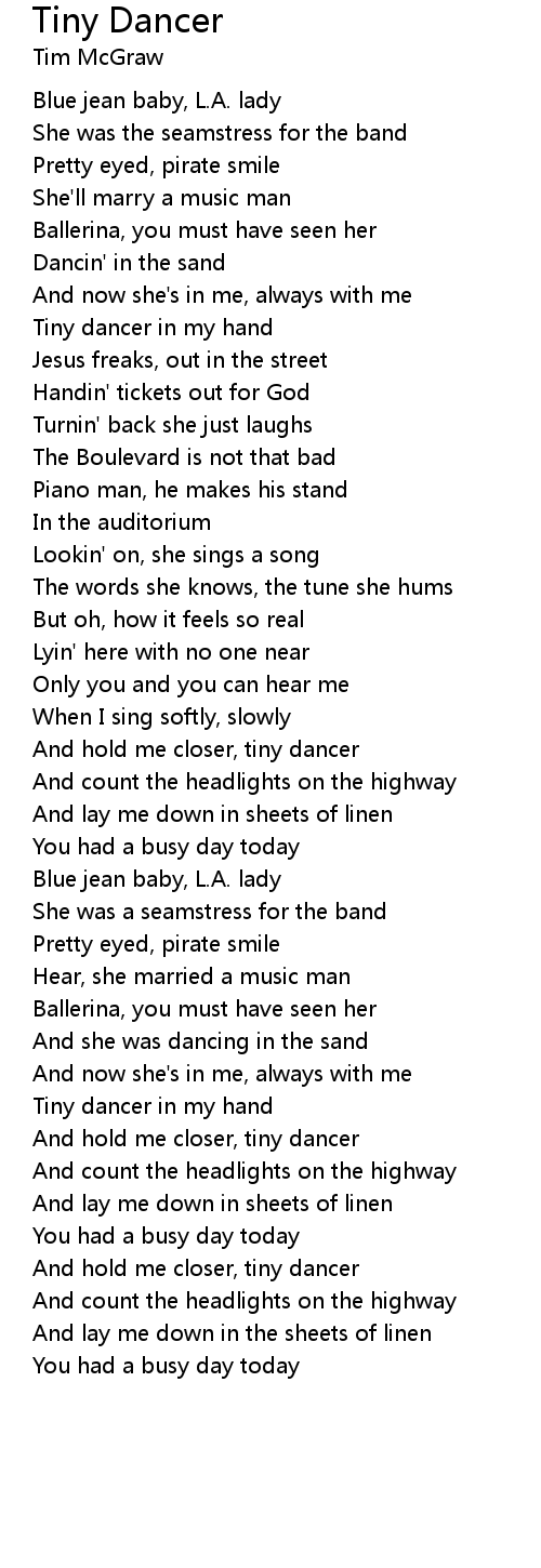 And hold me closer, tiny dancer |