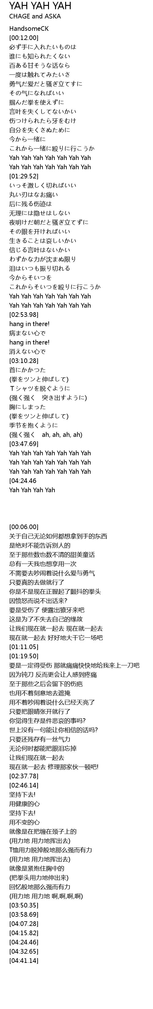 | [04:32.65][04:24.46][04:15.82] | Yah Yah Yah Yah Yah Yah Yah |