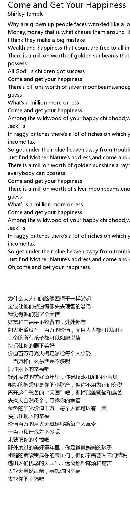 | [00:22.000] | Wealth and happiness that count are free to all in large amount |