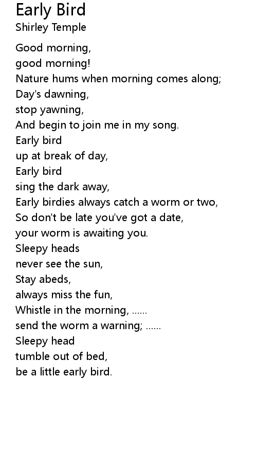 | Song | Early Bird |