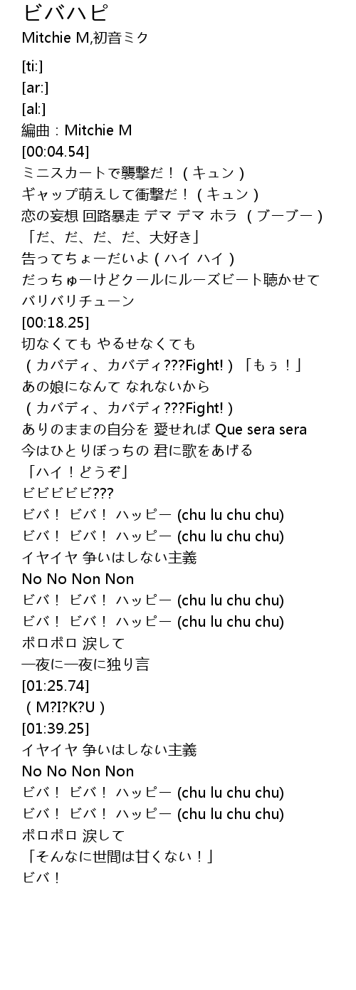 | [01:55.62] | ビバ! ビバ! ハッピー (chu lu chu chu) |