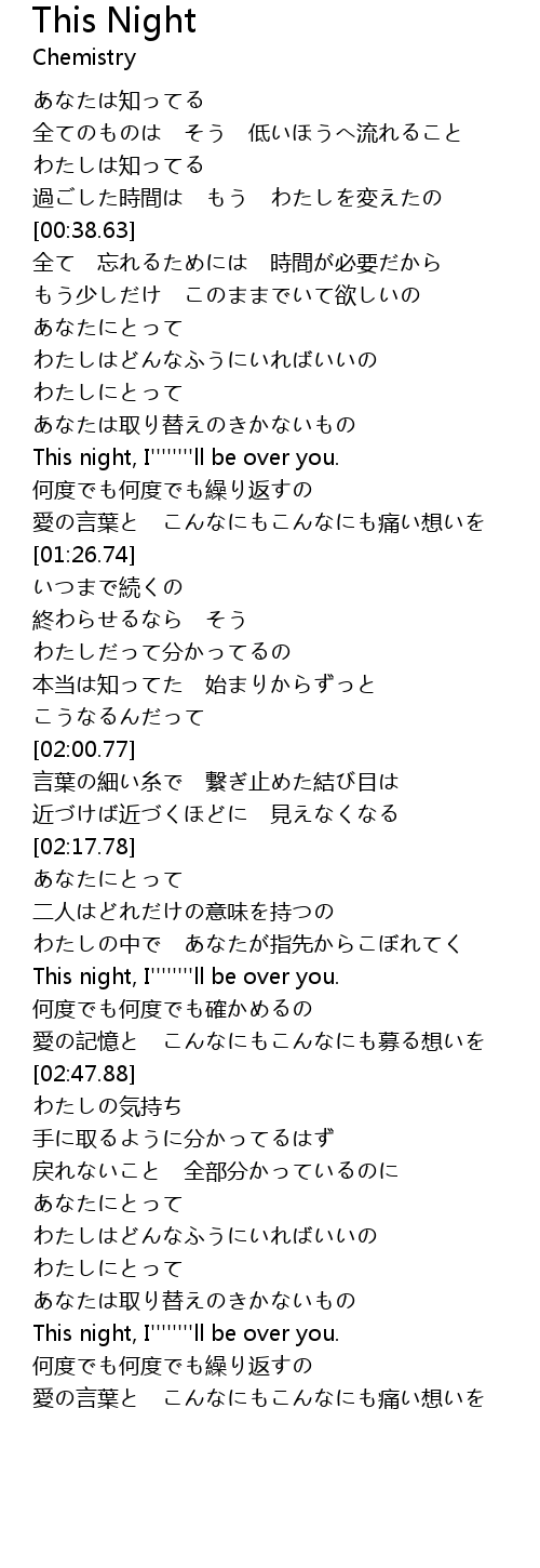 | [02:31.68] | This night, I''''''''ll be over you. |