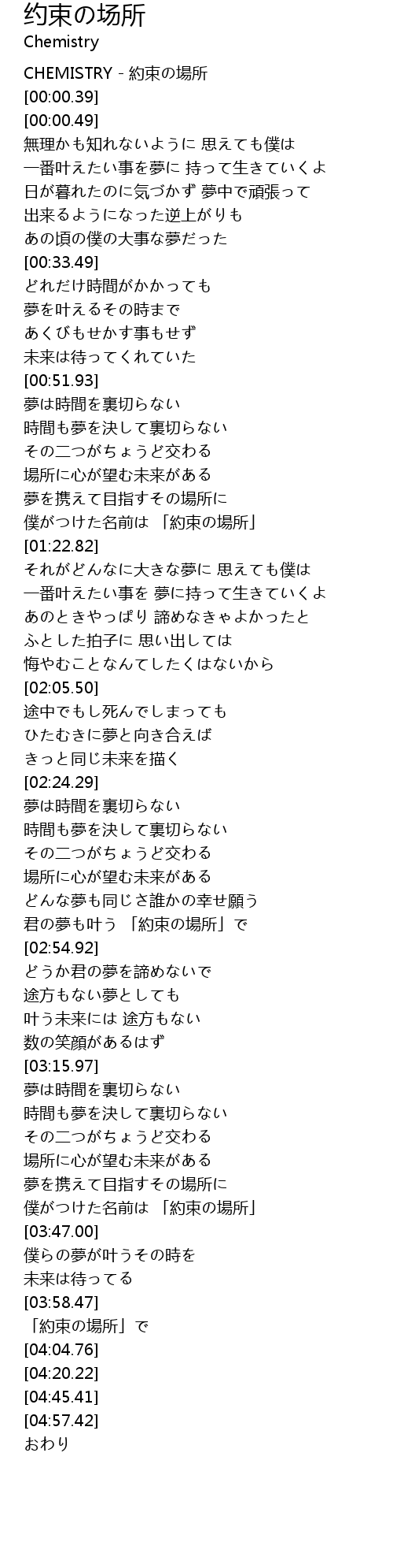 | [00:00.00] | CHEMISTRY - 約束の場所 |