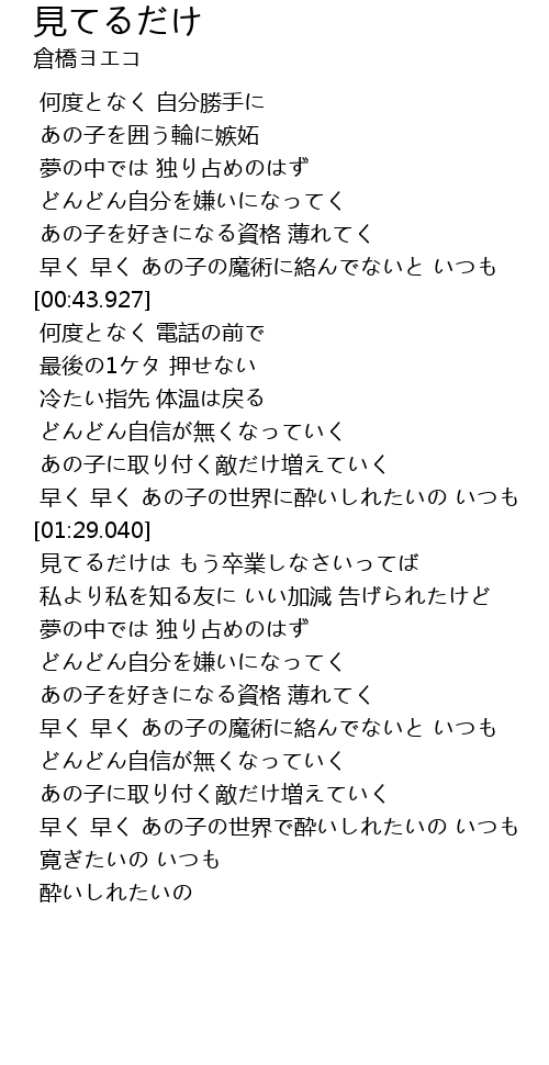 | [00:15.798] | あの子を囲う輪に嫉妬 |
