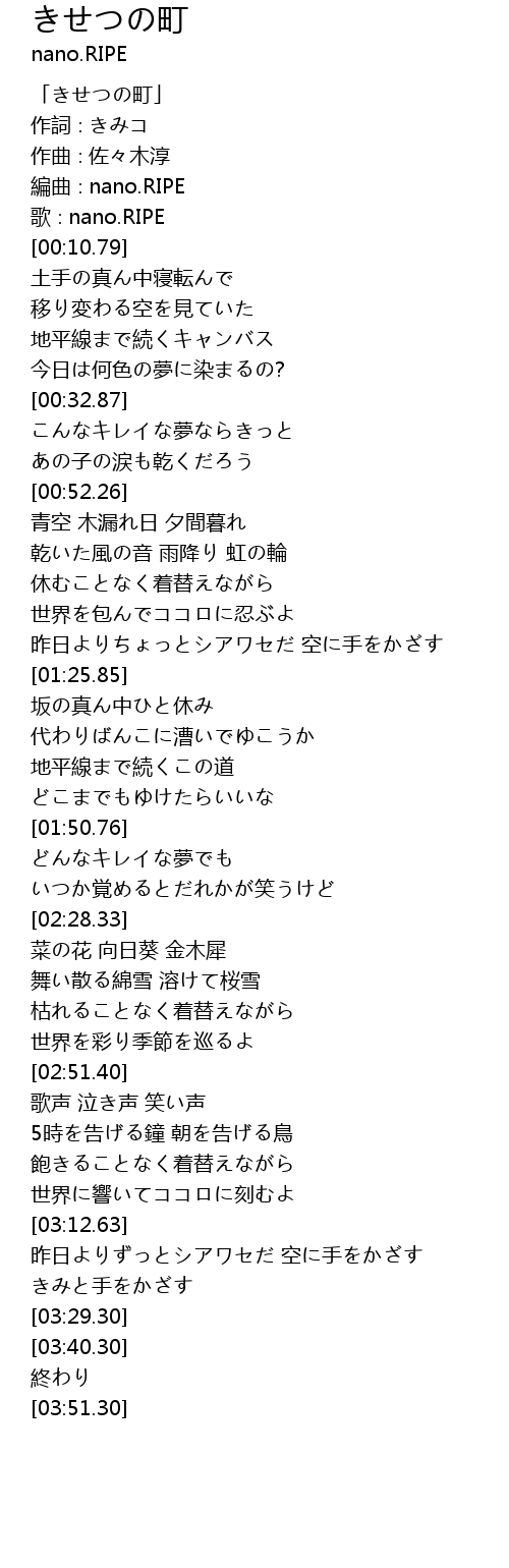 | [00:00.79] | 「きせつの町」 |