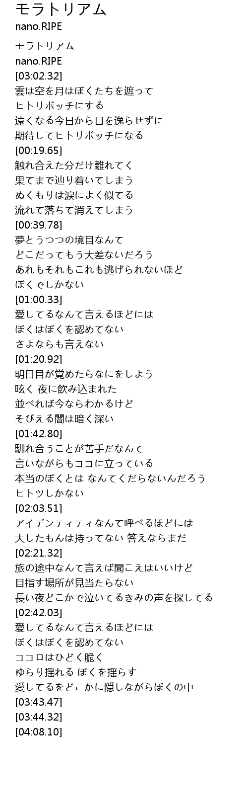 | [03:04.53] | 愛してるなんて言えるほどには |