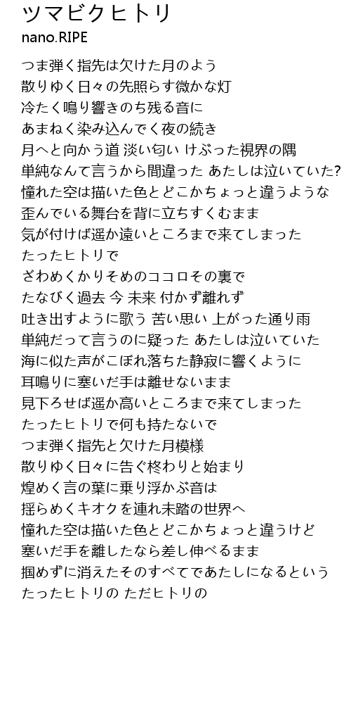 | Song | ツマビクヒトリ |
