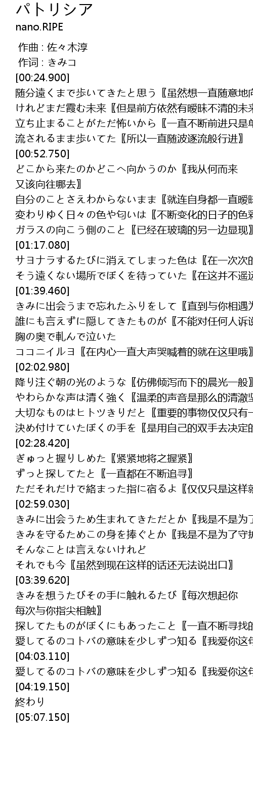| [00:59.450] | 自分のことさえわからないまま〖就连自身都一直暧昧不清〗 |