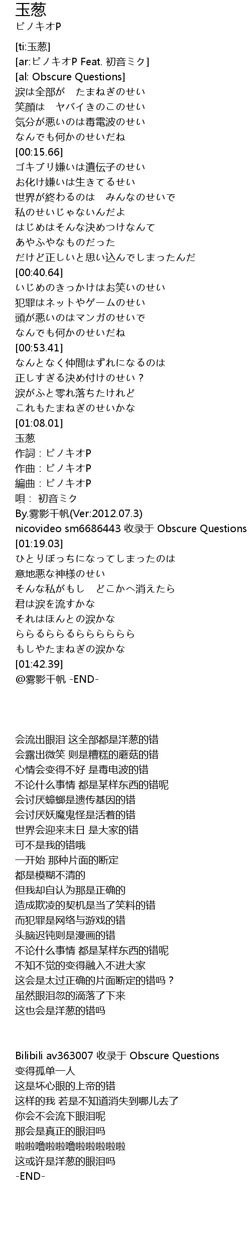 | [01:17.88] | nicovideo sm6686443 shōu lù yú Obscure Questions |