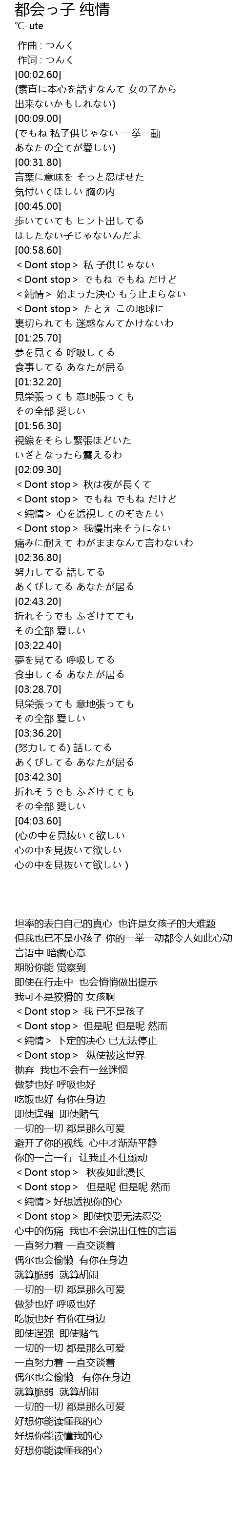 | [02:16.56] | <純情> 心を透視してのぞきたい |