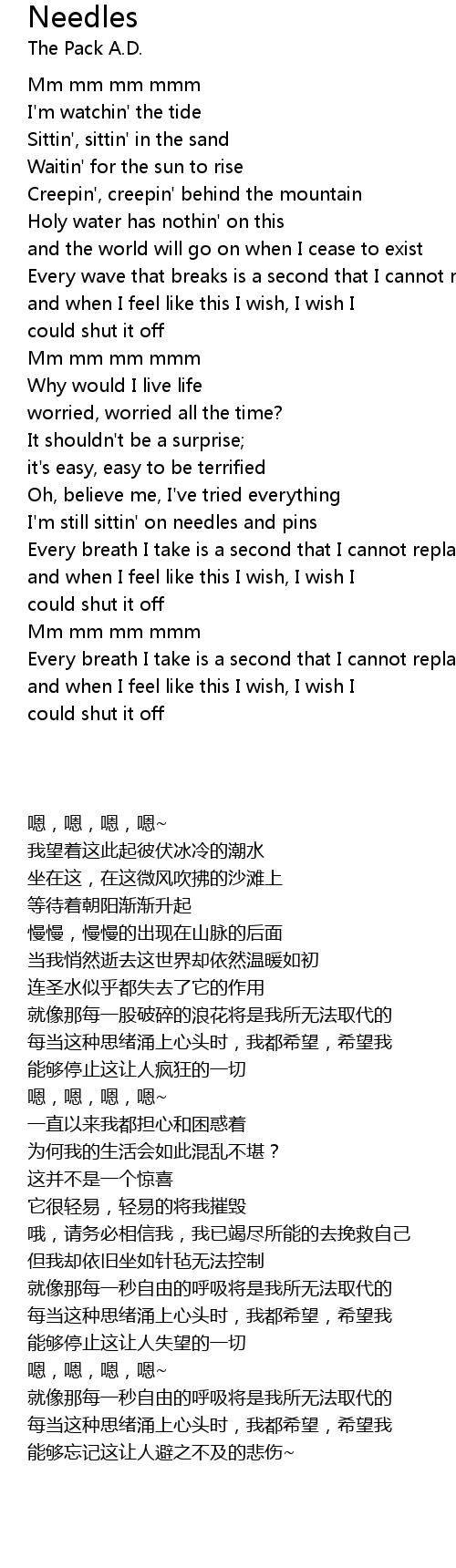 Needles Lyrics