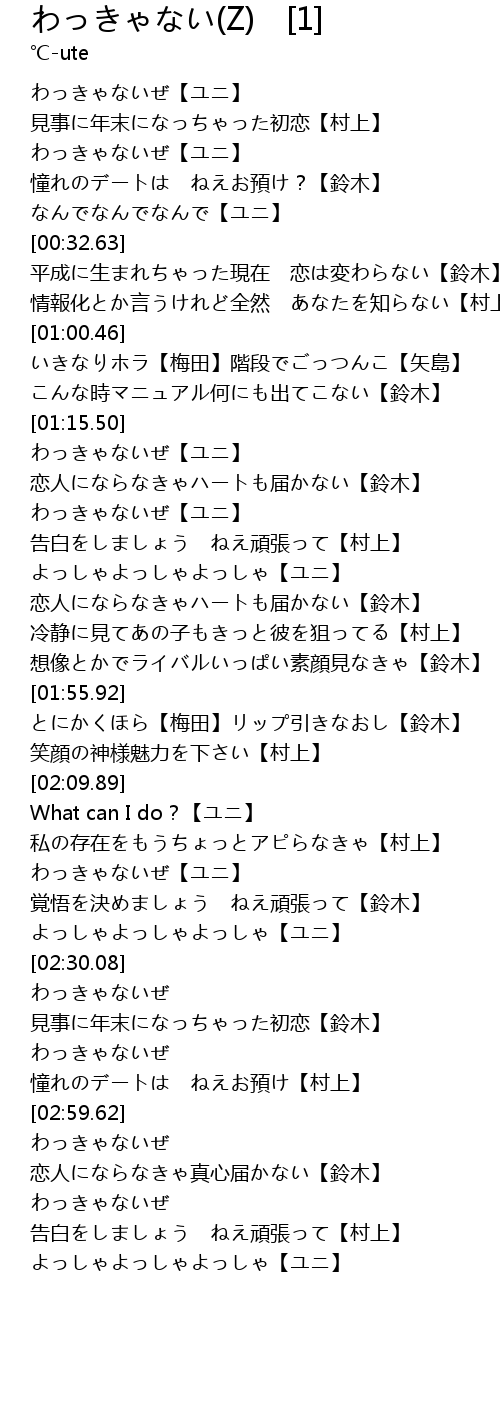 | [01:16.92] | わっきゃないぜ【ユニ】 |