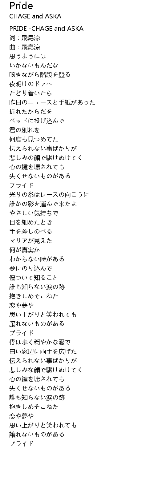 | [00:00.26] | PRIDE -CHAGE and ASKA |