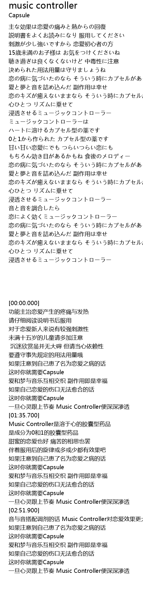 | ミュージックコントローラーは ハートに溶けるカプセル型の薬です | |