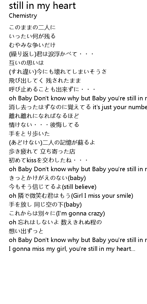 | oh Baby Don' t know why but Baby you' re still in my heart | |