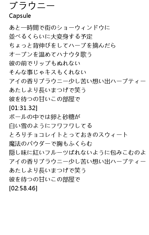| [00:58.43] | アイの香りブラウニー少し苦い想い出ハーブティー |