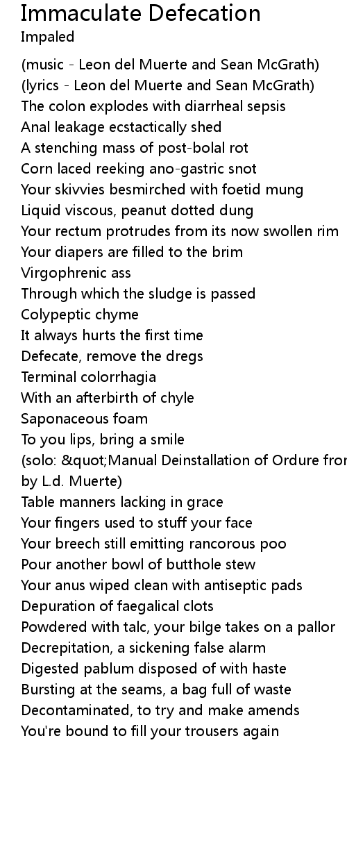 (solo: "Manual Deinstallation of Ordure from Partially Decrepit Bungs" by L.d. Muerte)