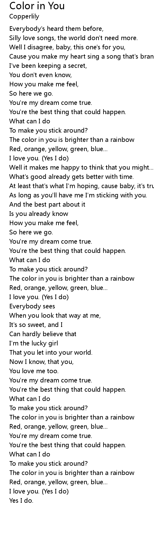 The color in you is brighter than a rainbow |