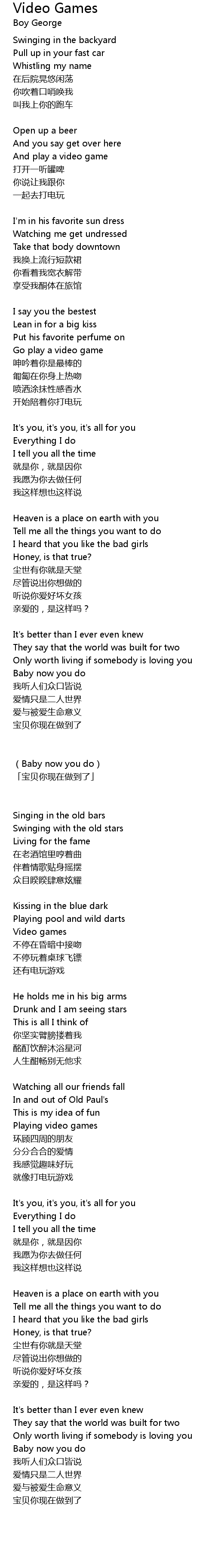 | Song | Video Games |