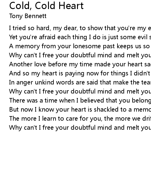 Why can't I free your doubtful mind and melt your cold, cold heart? |