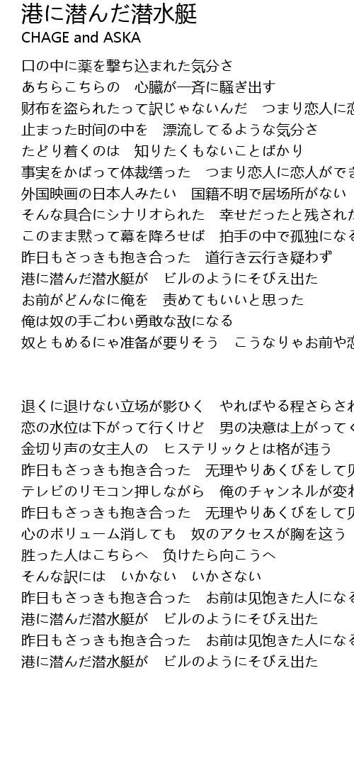 | Song | 港に潜んだ潜水艇 |