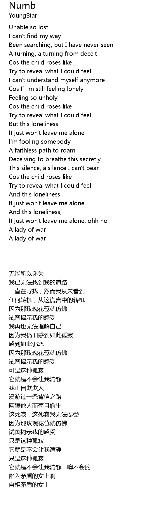 | [04:29.340] | It just won't leave me alone, ohh no |