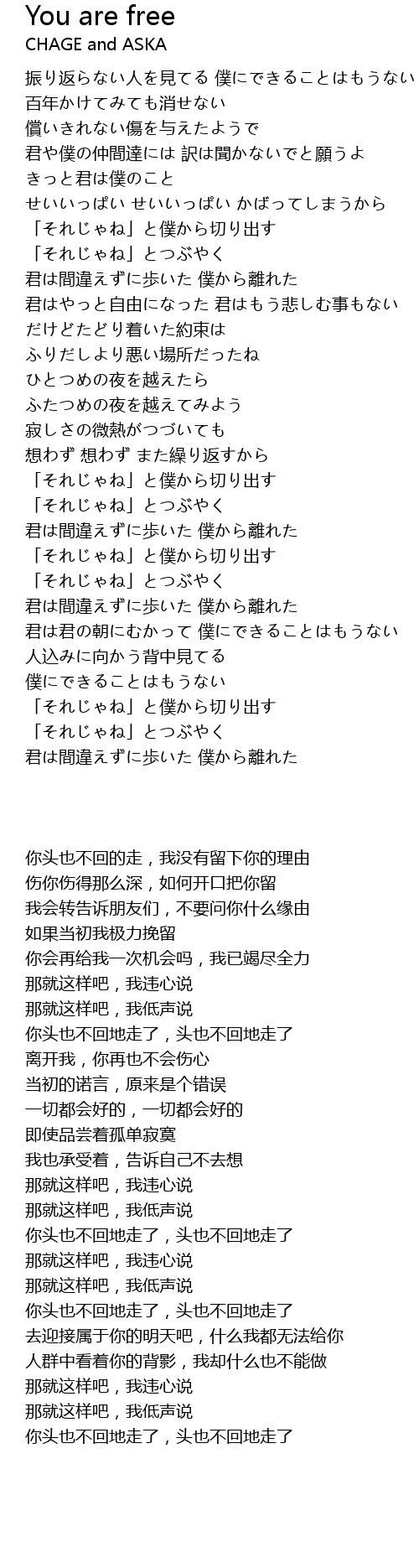 | [02:30.61] | 君はやっと自由になった 君はもう悲しむ事もない |