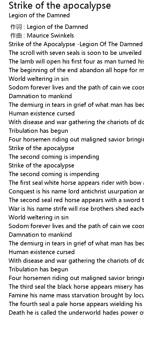 | [00:00.00] | Strike of the Apocalypse Legion Of The Damned |